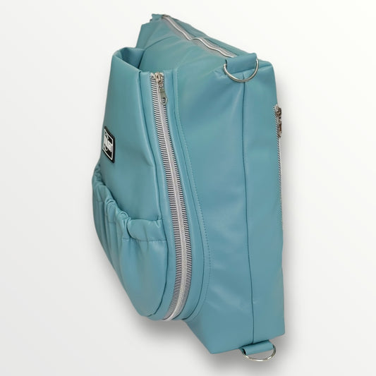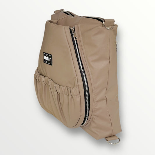 Con un estilo versátil y sofisticado, nuestra mochila-bolso de pádel de piel vegana de grosor medio, flexible y resistente, está disponible en tres tonos: Plata, Agua y Topo. ¡Elige tu favorita!
